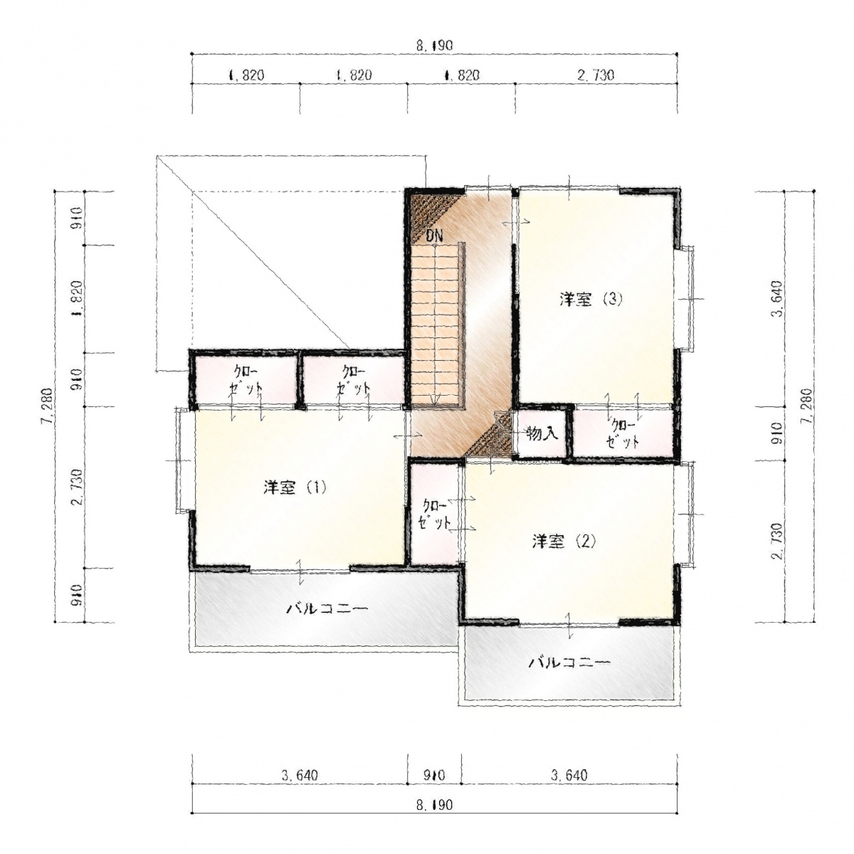 玄関ホールから正面に階段を配置することによって広々とした開放感を演出しています。